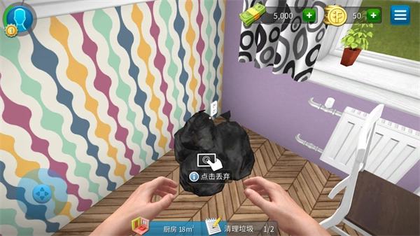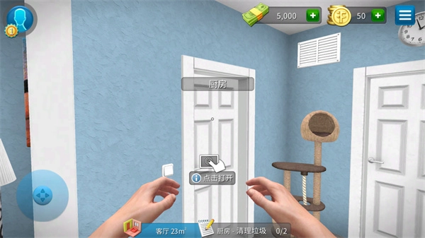 游戏界面下方设有各类不同任务,像进入厨房清理垃圾这类任务,要记得尽快完成。
