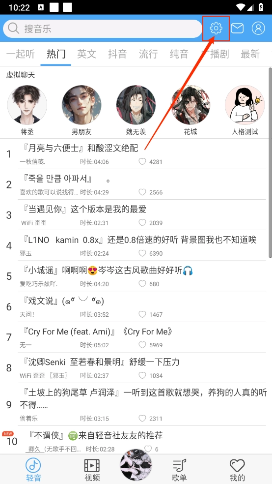 在豆特游戏结束后打开软件,进入主页后点击右上角的“设置”图标。