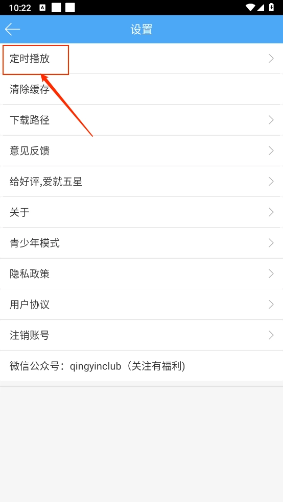 然后进入设置页面点击"定时播放"。
