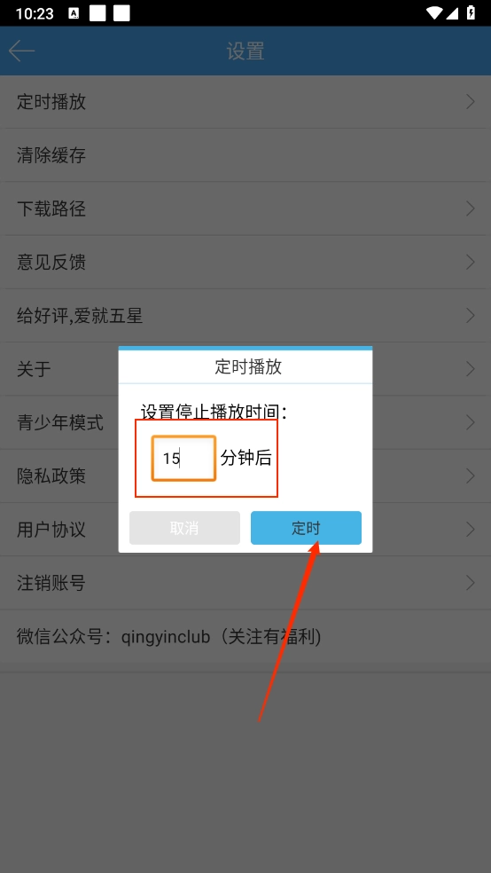 最后依据个人需求输入播放时间,再点击“定时”按钮就可以了。