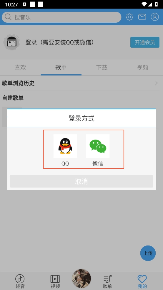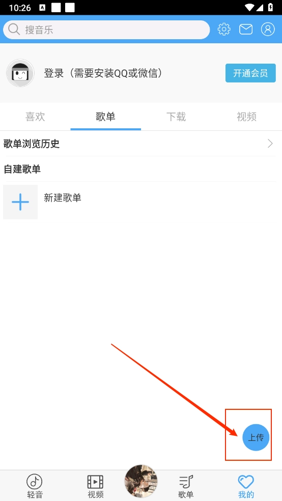 进入后点击"上传"按钮,如图所示。