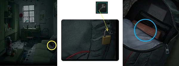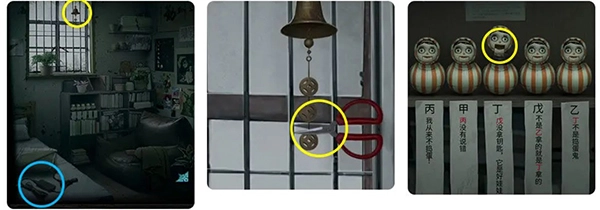 用“钥匙”开启401号房门,取走“剪刀”,把“积木”放置到门锁机关中,通过小游戏后,进入卧室。