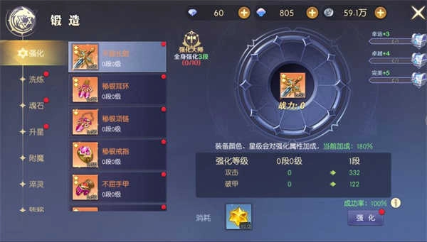 接下来是装备部分,除了通过击败boss和参与活动获取高品阶装备外,还能在锻造系统中进行多种强化操作。首先是提升装备的强化等级,这需要消耗星辰碎片,而该道具可通过光明寻礼、凛冬堡垒、限购商城等渠道获取。强化等级提升后,装备的基础属性会有显著增长。在强化过程中,建议尽量采用“雨露均沾”的方式,即均衡提升各装备的强化等级,这样可以触发“强化大师”的额外属性加成。