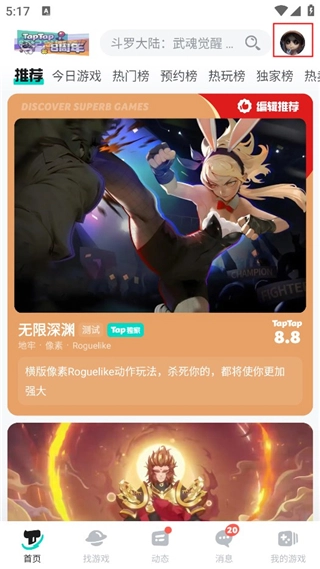 在本站taptap后登录,打开点击右上角头像。