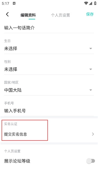 在编辑资料下找到提名实名信息。