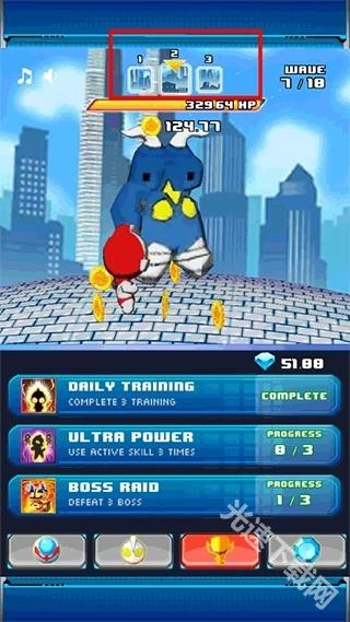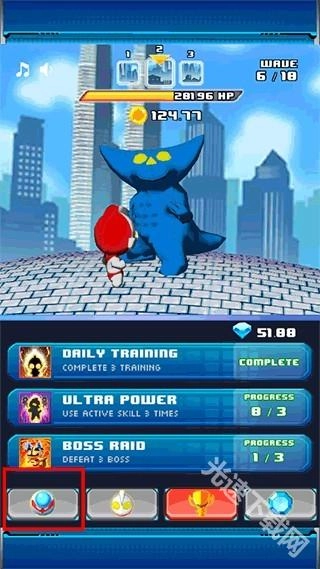 最上方的是奥特曼需要守护的城市,点击还能切换城市场景。
