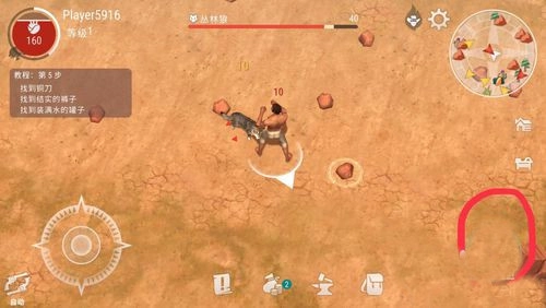 当遇到野兽或小动物时,点击右下角的战斗按钮,即可与之展开战斗。