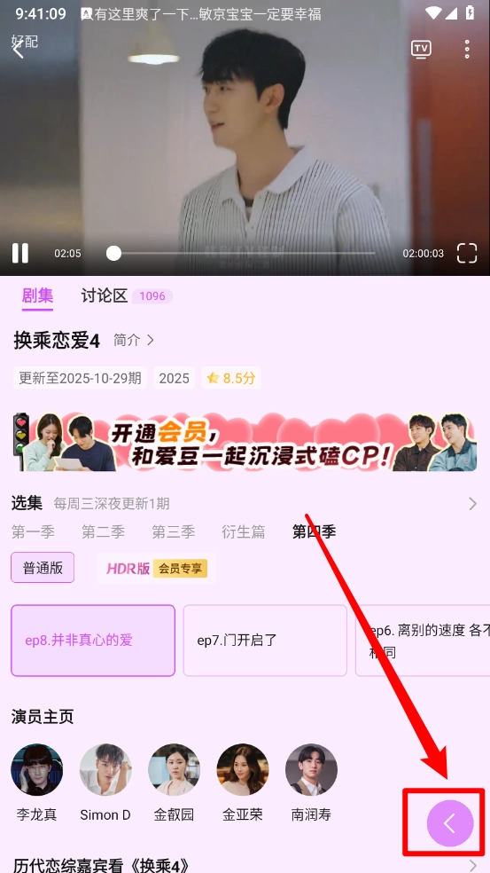 进入播放详情页,如图,点击箭头所指图标。