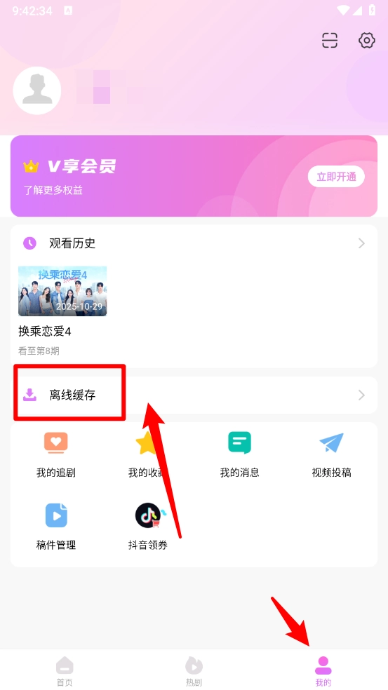 最后在我的页面,点击"离线缓存"进入,