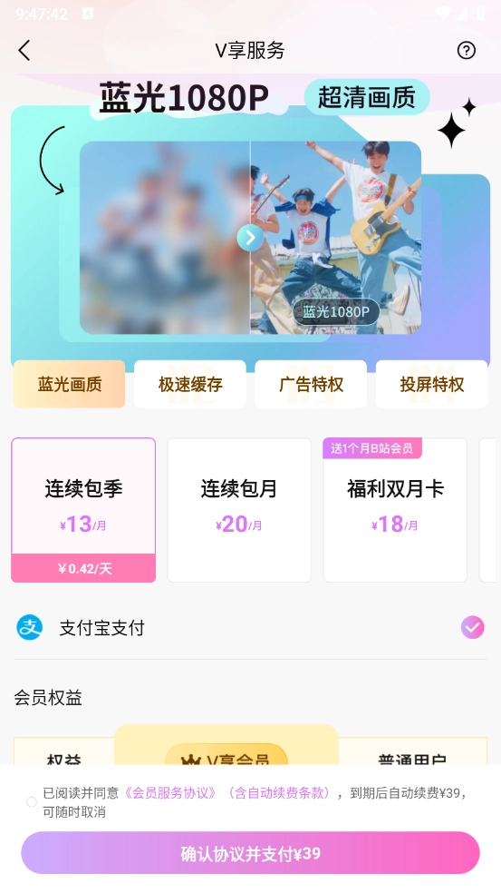 打开"v享会员"页面,如图所示。