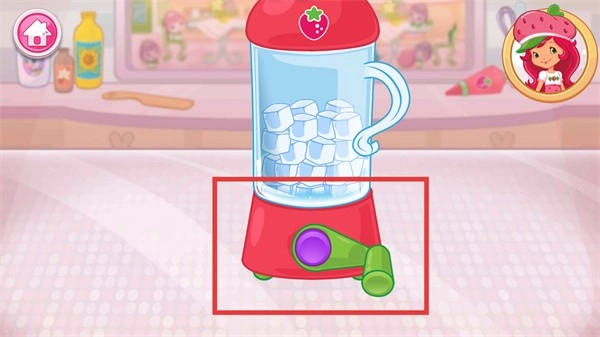 制作的第一步,把右侧【装着冰块的草莓碗】添加到杯子里,以此完成基础材料的准备工作。