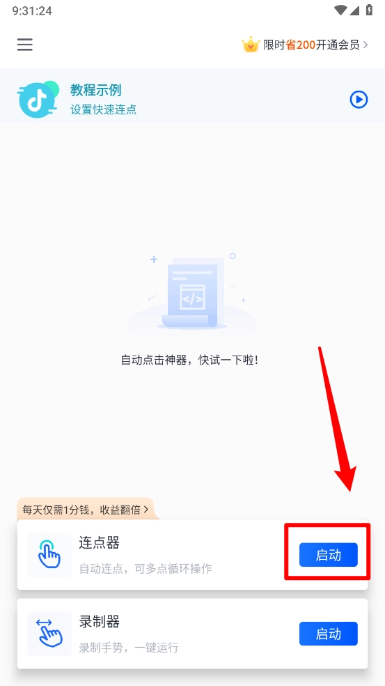 回到主页,打开连点器的开关,选择新增点击模式,设置好相应的参数,就能启动点击操作了。