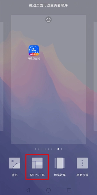长按手机桌面,直到出现“小工具”设置界面。