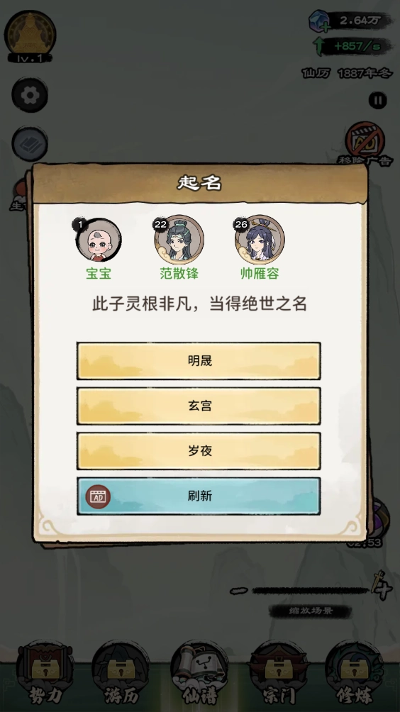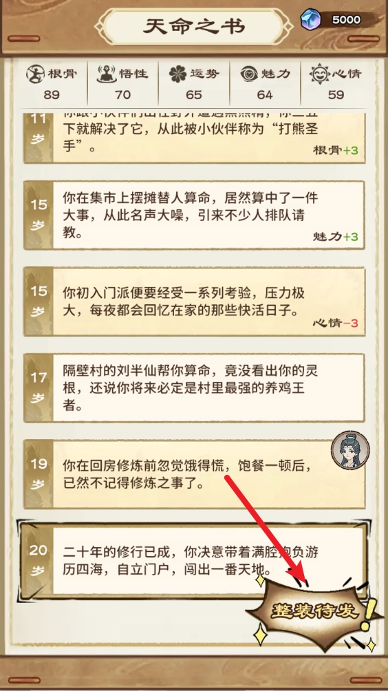 正式开启后,玩家会先从出生阶段起步,一路经历形形色色的事件成长至20岁,随后便能踏上修仙的旅程。
