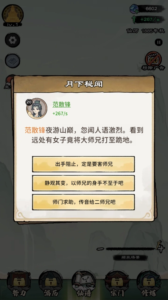 在修炼过程中,会随机出现各种时机,不同的回应会带来不一样的结果。