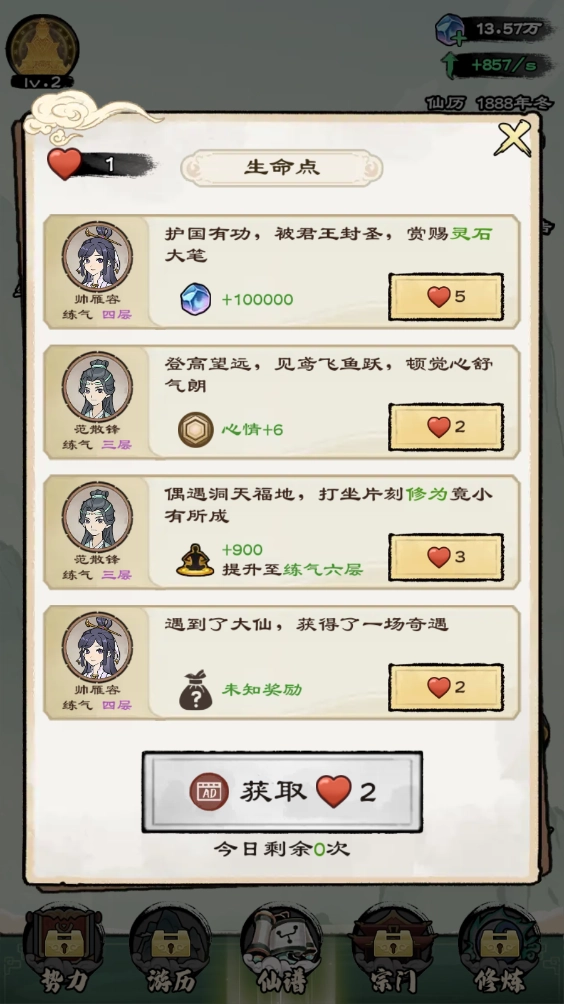 在修炼的过程里,还能获取生命点,这些生命点可用于兑换各式各样的奖励。