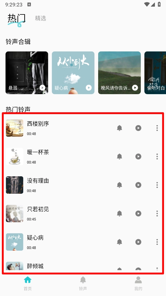 用户能够自主挑选歌曲或铃声,并把它们设为手机铃声。
