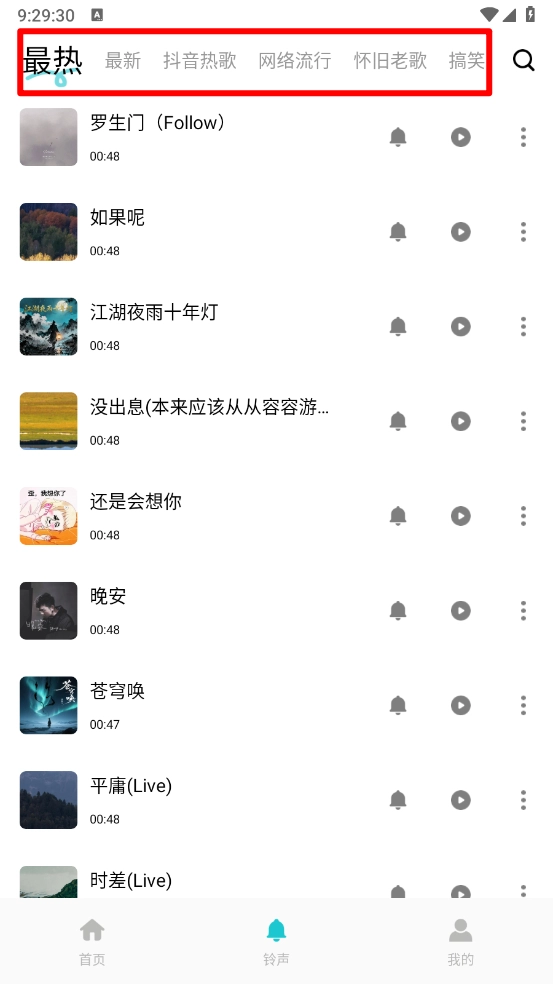用户能够依据分类来搜索各类音乐与铃声片段,便捷地找到自己需要的内容。