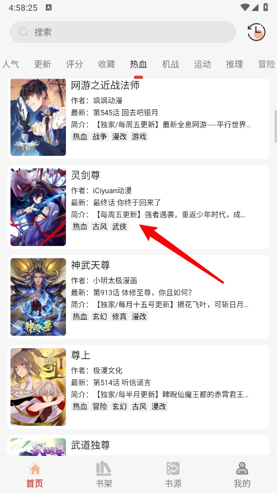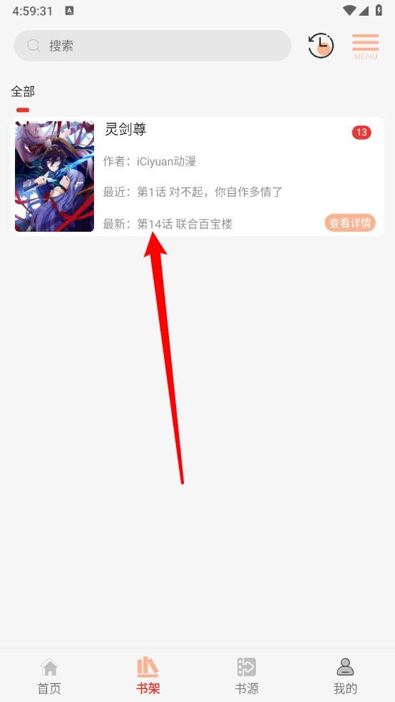 最后在书架板块,就可以查看所加入的漫画。