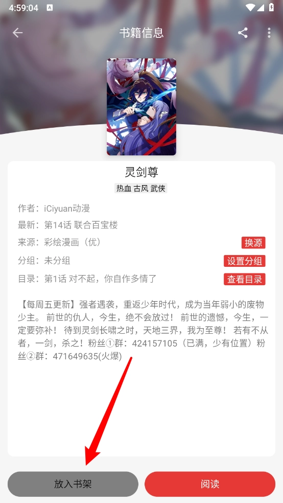 进入漫画详情页,点击"加入书架"。