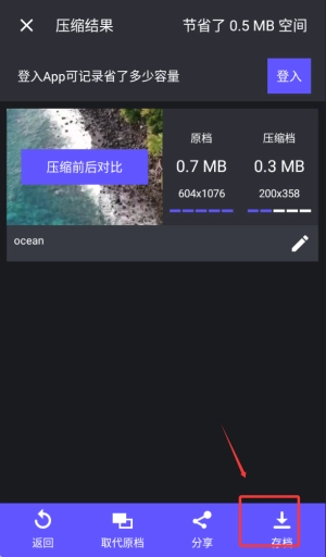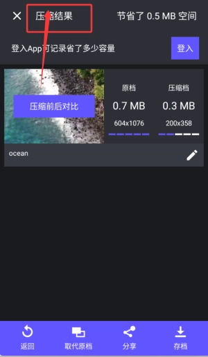 完成压缩后,可查看压缩前后的对比情况,并且支持直接播放来检验效果。