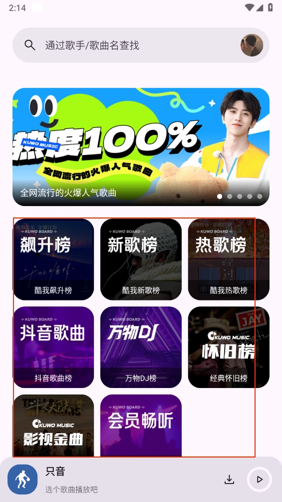 只音,也被称作只音音乐,整合了全网优质的热门音乐榜单资源,配备了一个高效的搜索引擎,只需一键输入歌曲名就能快速找到心仪的音乐,还支持离线播放,提供多种音质选项供你挑选,所有歌曲均可免费畅享。