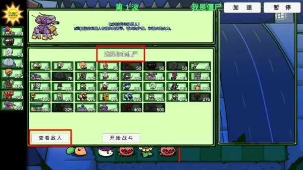 和常规玩法一样,玩家能依据敌人的阵型来挑选僵尸投入战斗。