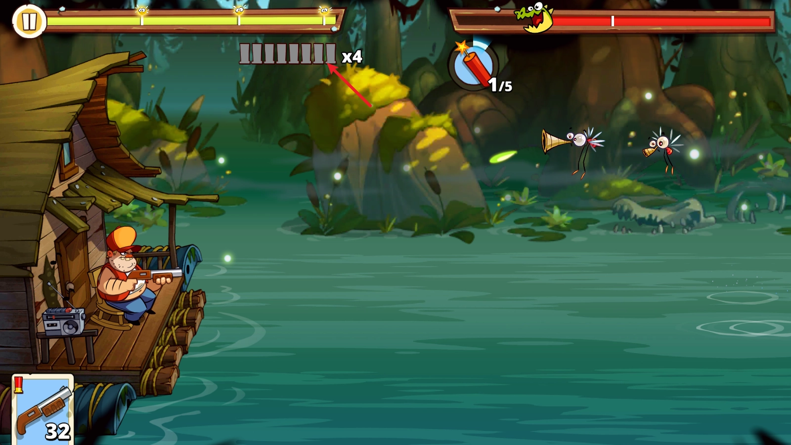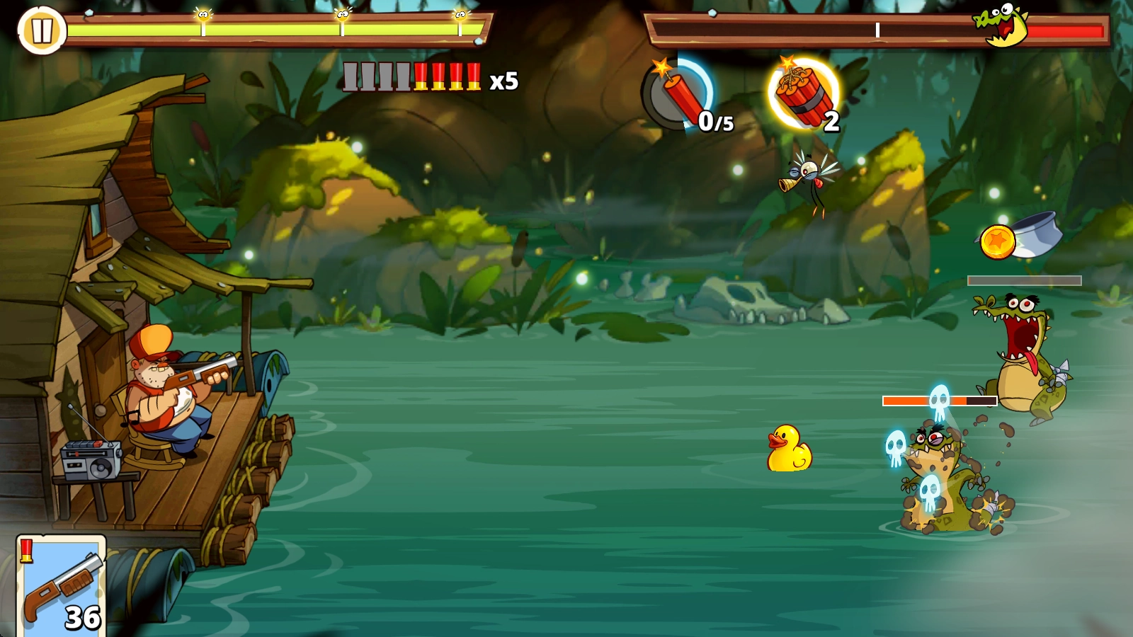 《沼泽激战2》(英文名Swamp Attack 2)是一款颇具特色的趣味塔防游戏。它的敌人出波机制与《植物大战僵尸》相似,但防御方式并非布置植物,而是由玩家操控主角射击来击退一波波入侵的敌人。战斗中还能使用炮仗、炸弹等道具,实现大范围的群体杀伤!此外,挑战过程里会随机出现小黄鸭,及时拾取就能获得意想不到的收获哦!游戏还支持局外养成系统,玩家可以借此提升整体火力,解锁新角色和武器,尽情体验更丰富的塔防乐趣!