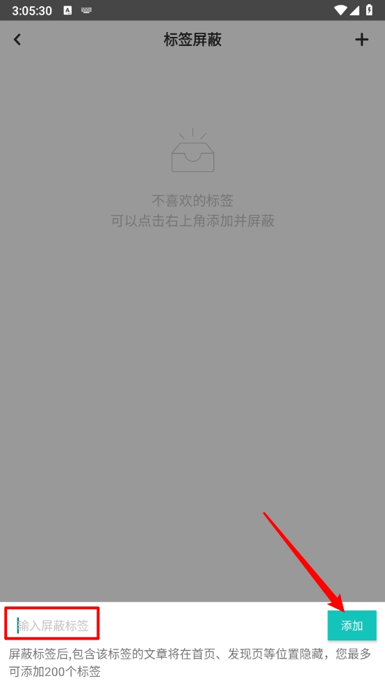 先选择好需要屏蔽的标签并添加后,点击“添加”按钮就可以了。屏蔽标签后,含有该标签的文章会在首页、发现页等页面隐藏,最多能添加200个标签。