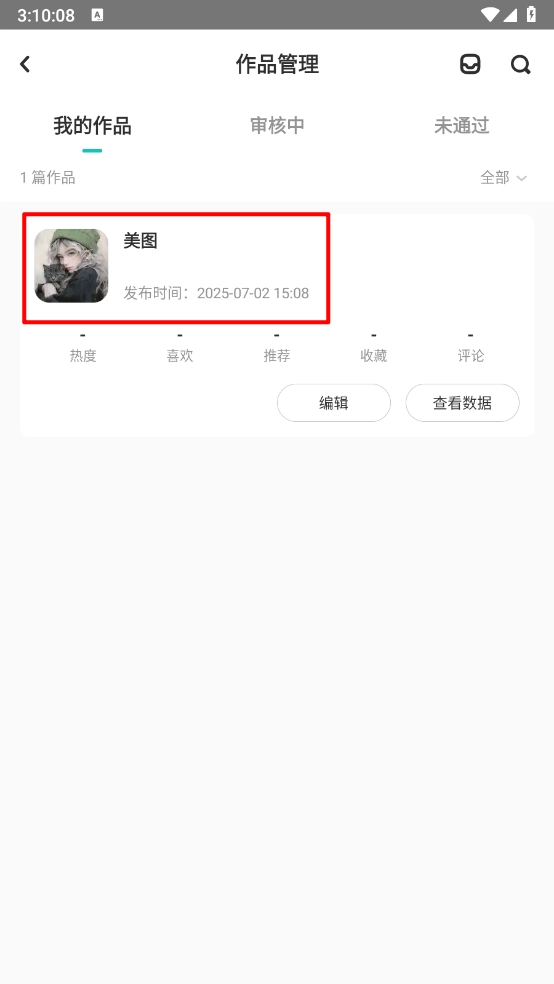 在作品管理页面就能查看所有作品,长按想要删除的作品即可。