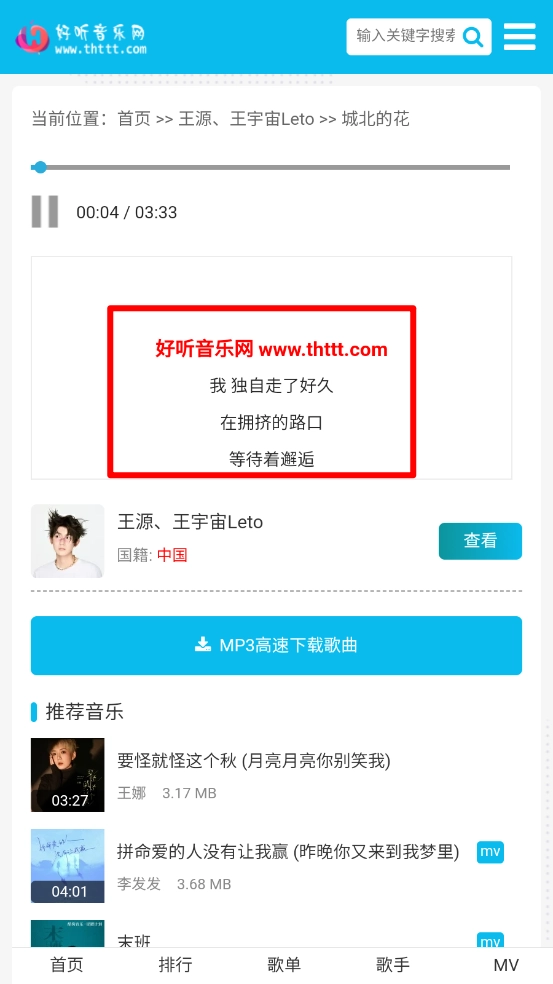 支持在线试听歌曲、查看歌词,可随时在线听歌,畅享便捷的音乐体验。