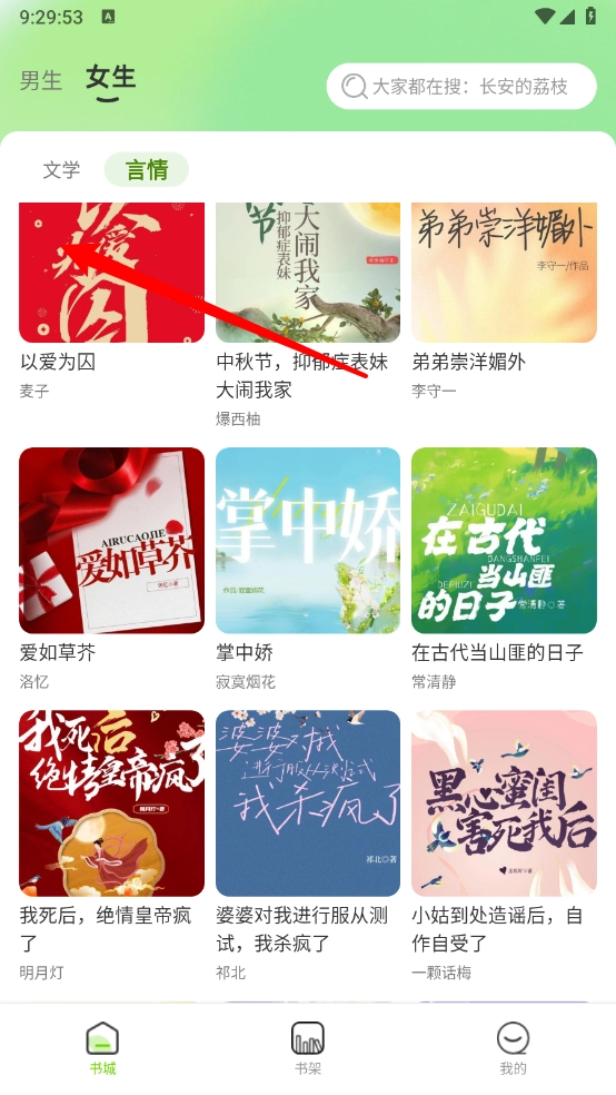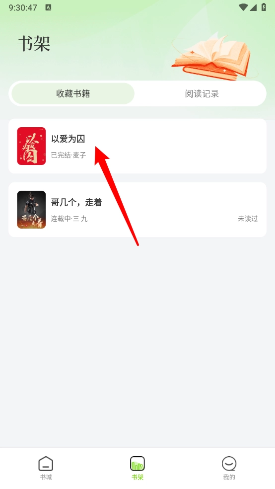 回到主页后切换到“书架”板块,就能查看自己收藏的小说了。