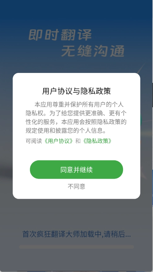 首先在本站找到疯狂翻译大师,查看并同意隐私政策与用户协议。