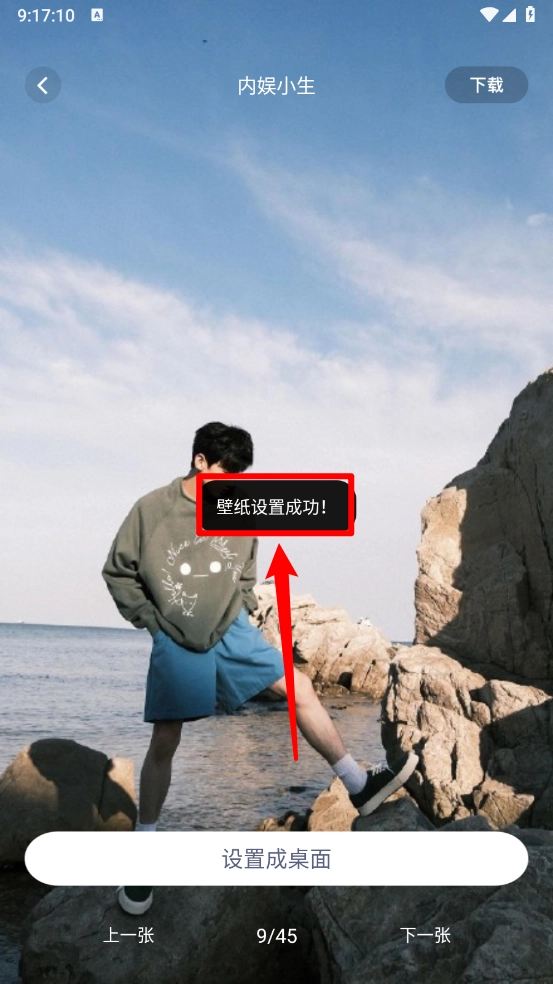 在壁纸页面点击"设置成桌面"。