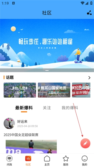 在社区页面,点击编辑图标,进入写动态页面。