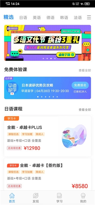 创新教学模式,与老师实时双向互动,让日语、英语、法语、德语、韩语、西班牙语学习更轻松!