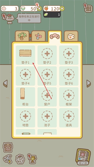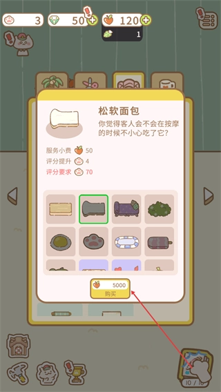 在界面布置选项中选择垫子1,将其更换为松软面包垫,消耗5000货币以提升评分。