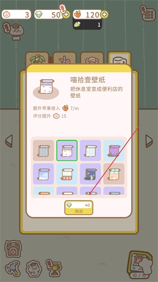 切换到壁纸分类,选择喵拾壹壁纸,消耗40钻石进行更换,以此来提升评分。
