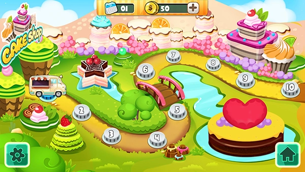 采用温暖细腻的视觉设计,蛋糕造型精致诱人,店面场景温馨治愈,柔和的色彩搭配让整个游玩过程都充满舒适感,提升烘焙与经营的沉浸感。