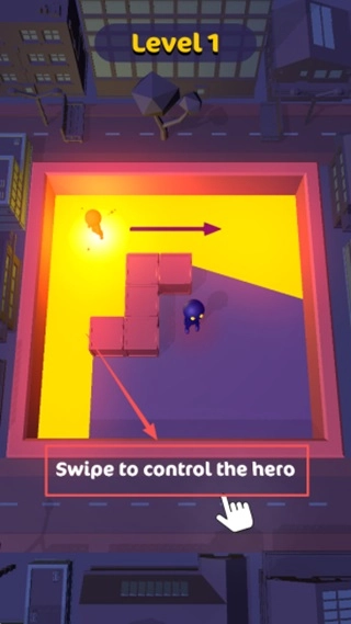 开始挑战:进入关卡后,注意“滑动以控制英雄”的提示,通过滑动屏幕来指挥火柴人英雄移动,开启这场冒险。