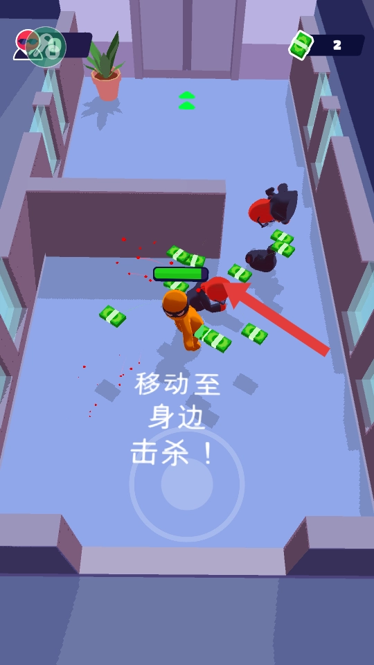 独特隐身技能设定:开局可选择隐身技能,松开手指即可触发,技能效果为变成一盆花,待敌人视线离开后可直接近身一刀击杀,为闯关提供灵活策略选择。