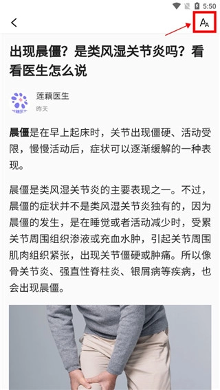 当你阅读文章时,若遇到看不清的内容,可点击右上角的字体设置来调整字体大小。