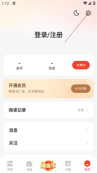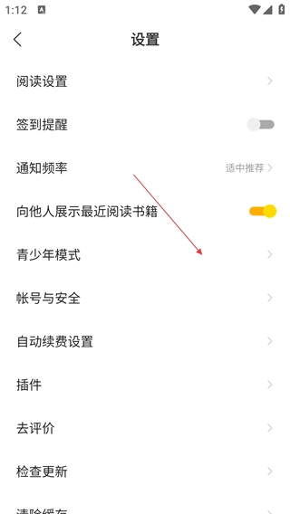 在【我的】页面,点击右上角齿轮形状的【设置】图标,进入设置界面后,就能进行阅读、青少年模式等多种设置操作。
