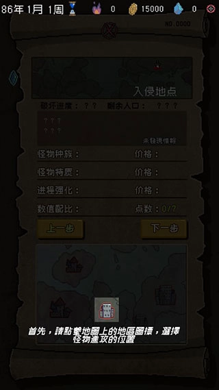 首先,请点击地图上的图标,选择怪物攻击的位置。