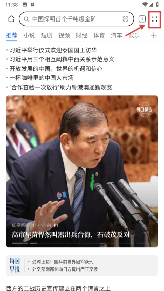 打开浏览器,点击右上角的功能选项按钮。