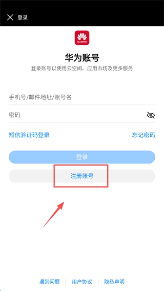 在功能选项中,点击登录华为账号。