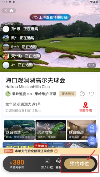 在详情页中,点击“预约球位”按钮,即可完成球位预约的相关操作。