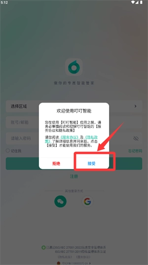 打开应用,仔细阅读服务条款和隐私政策,之后点击同意按钮。
