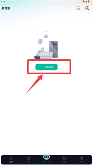 成功登录后进入家庭管理页面,轻点屏幕上的添加设备选项。