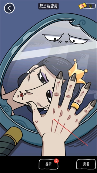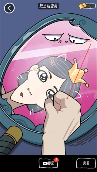 继续与魔镜里的元素进行互动,对王后的外观细节加以调整,以此推动关卡进度的前进。